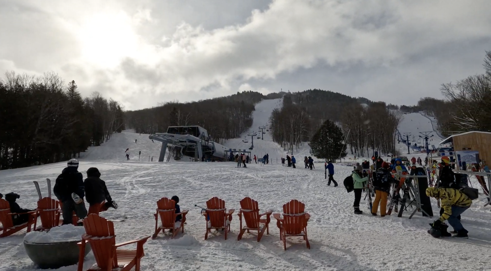 While slightly busier than some more locally oriented resorts in southern Quebec, Owl’s Head still enjoys the extremely low crowds typical of a Quebec resort. Even on powder days, it’s commonplace for most or all lifts at Owl’s Head to be ski-on or close to it, particularly with the high uphill capacity of the primary high-speed lifts.