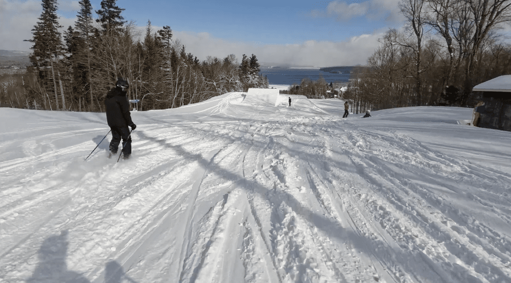 For a resort in southern Quebec, terrain parks at Owl’s Head are surprisingly abundant and built up, despite not all being depicted on the trail map. A few quite substantial terrain parks exist in the lower mountain, although these park setups focus almost exclusively on medium to large features, with very few progression-oriented zones—and in our experience, the low slope angle often conflicts with the size of these builds.